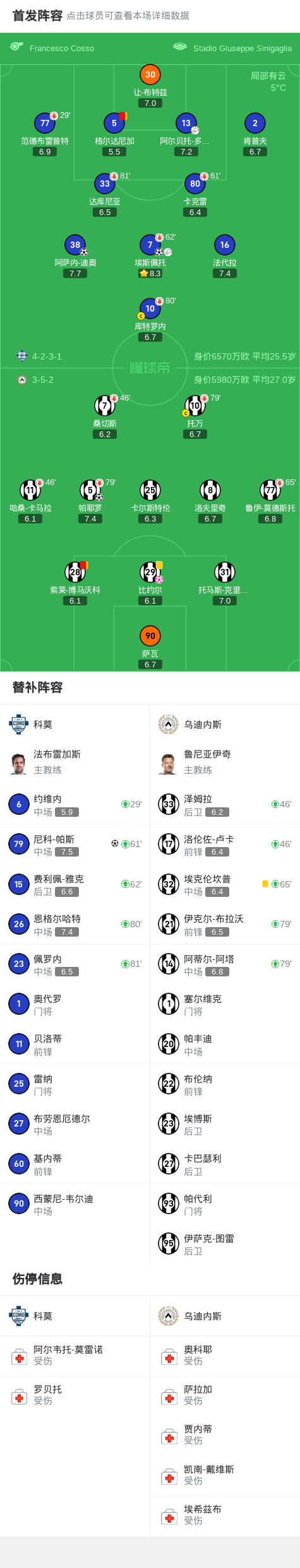 乌迪内斯队在比赛中也并不示弱,球员帕耶罗在下半场打入一球为球队扳回一城。然而,乌迪内斯的比约尔在比赛中不慎自摆乌龙,让科莫队再次扩大了领先优势。最终,科莫队的尼科-帕斯在比赛结束前的最后时刻助攻得手,锁定了胜局,最终科莫队以4-1击败乌迪内斯队,取得了一场关键的胜利。